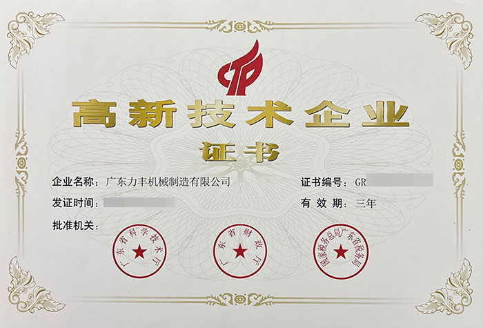 乐球直播机械制造有限公司于2016年成为国家高新技术企业